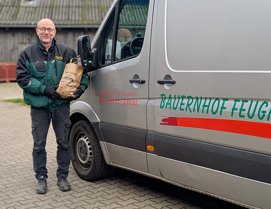 Mittlerweile unterstütze ich das Hofteam in vielen Bereichen des landwirtschaftlichen Alltags. Besonders das Ausliefern unserer Kartoffeln gehört zu meinen regelmäßigen Aufgaben. Dabei freue ich mich über die Kontakte zu unseren Kundinnen und Kunden und darüber, aktiv zum reibungslosen Ablauf im Betrieb beizutragen.